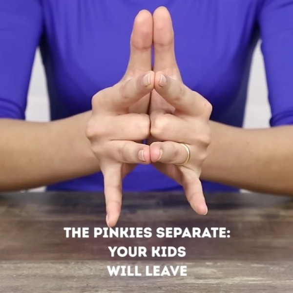 Hãy đặt tay của bạn chạm vào nhau như hình, gập ngón giữa xuống vì đó đã là bản thân chúng ta. Ngón cái dễ dàng được tách ra nên có thể thấy, cha mẹ rồi cũng sẽ có một ngày rời xa chúng ta mãi mãi.